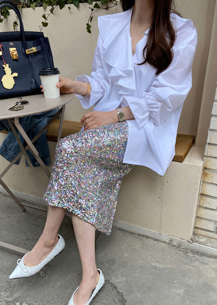 Ruffles Blouse Tops Fall White Asymmetrical Cotton