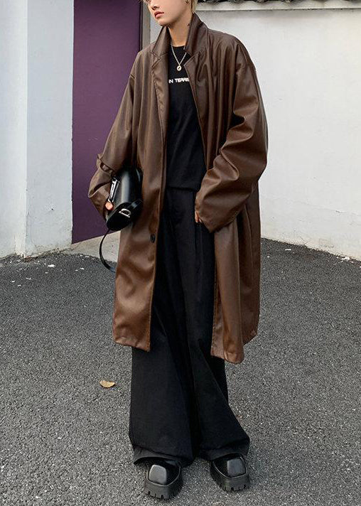 Indulge in the luxurious simplicity of our Brown Faux Leather Men's Coats, adorned with a stylish Peter Pan collar and classic button detail. Perfect for the spring season, this premium piece exudes sophistication and exclusivity.