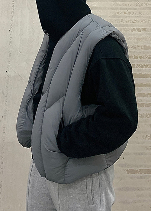 Simple Grey Zip Up Pockets Cotton Filled Mens Waistcoat Sleeveless RN002