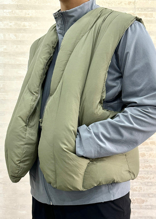 Luxurious Grey Waistcoat with Zippered Pockets, Made of Soft Cotton and Filled for Comfort, Sleeveless for a Sleek Look.