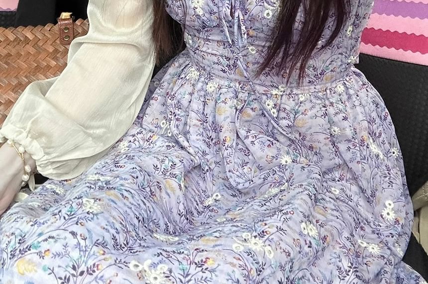 Spaghetti Strap Floral Midi A-Line Sundress / Plain Bolero