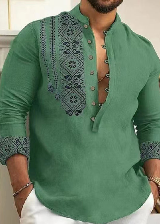 Stand Cotton Men's New Print Grey Fall Collar Shirts