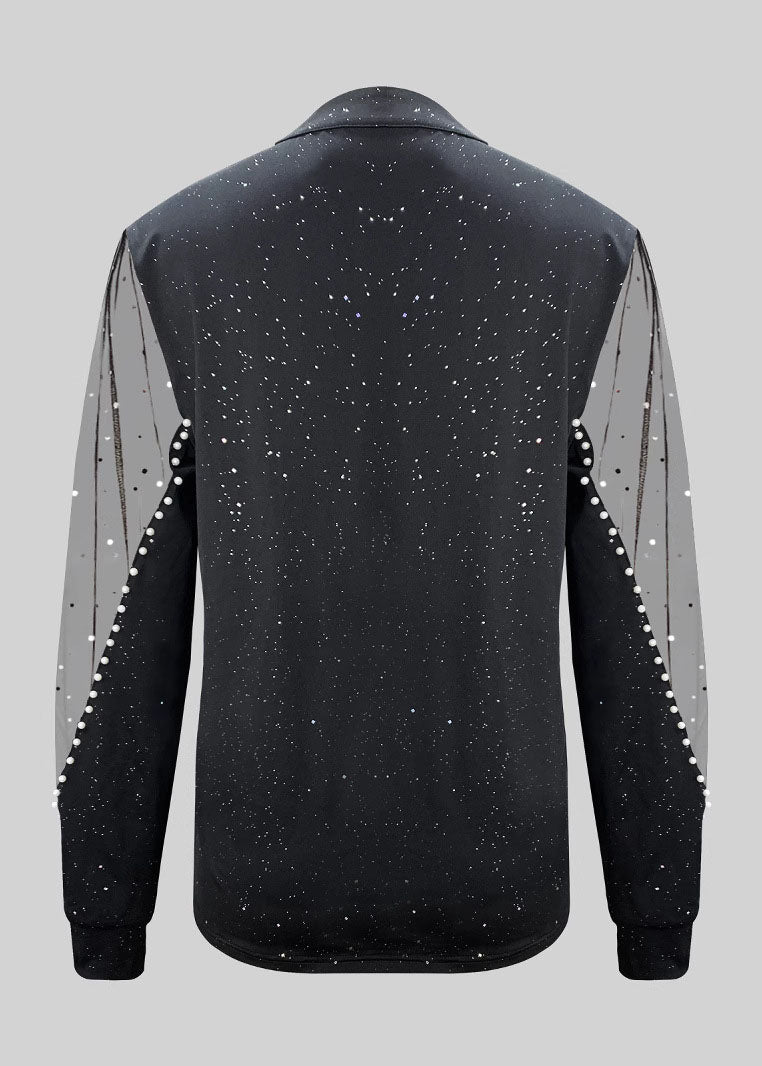 Indulge in the opulence of our exquisite Stylish Black V Neck Tulle Patchwork Blouses, perfect for the luxurious spring season.