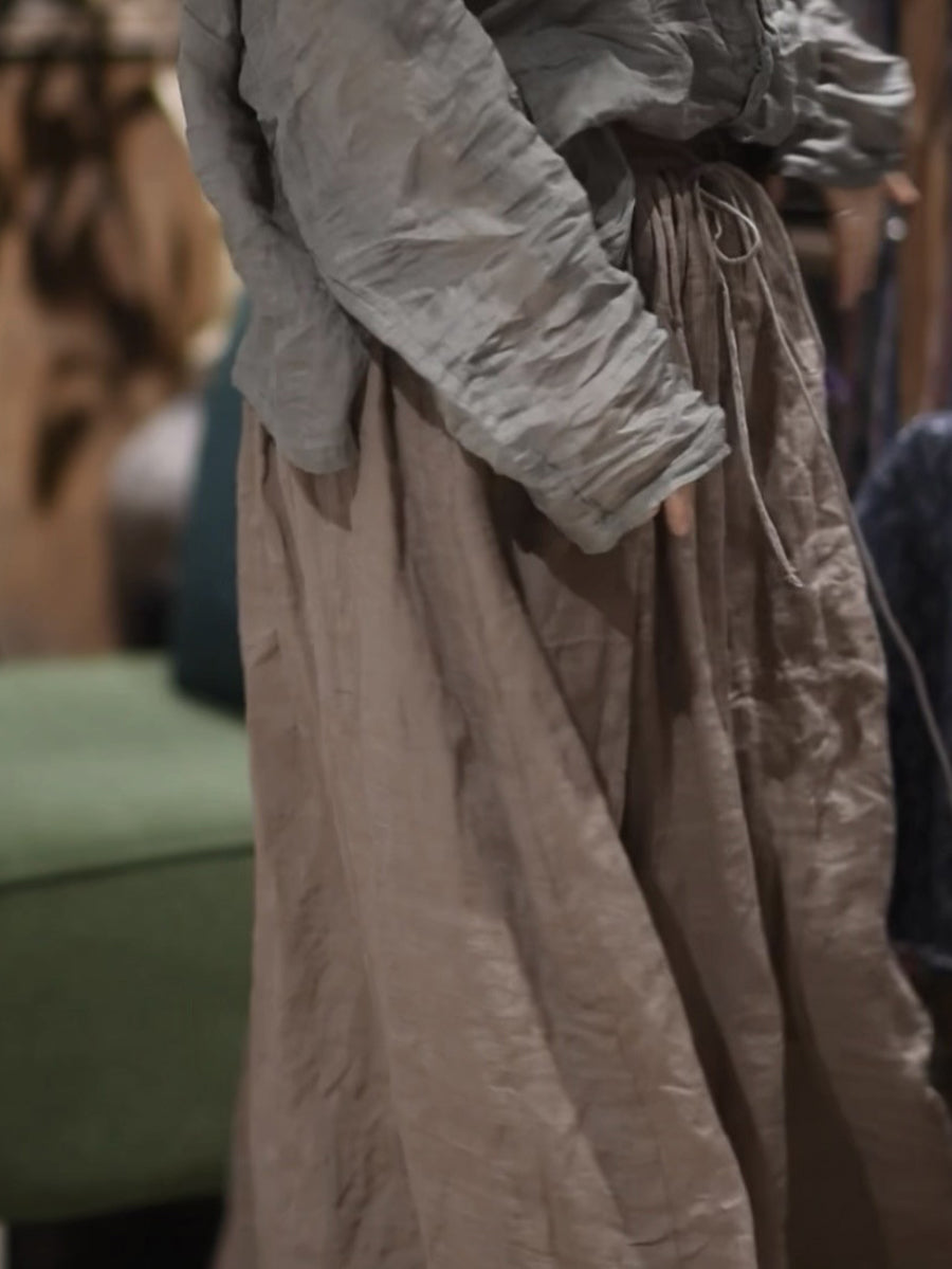 Summer Vinage Colorblock Ramie Loose Women Skirt