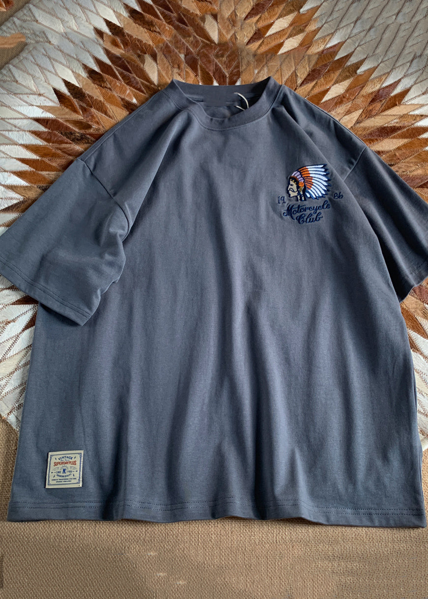 T Men Stylish Embroideried O-Neck Summer Cotton Shirt White