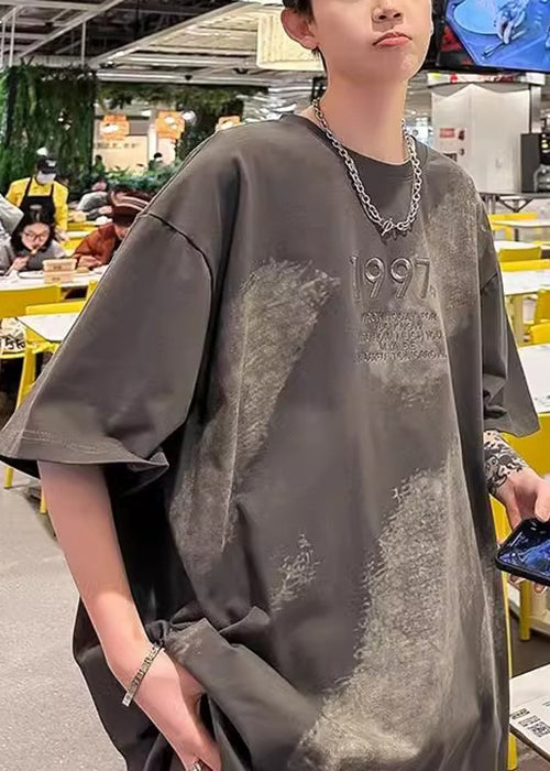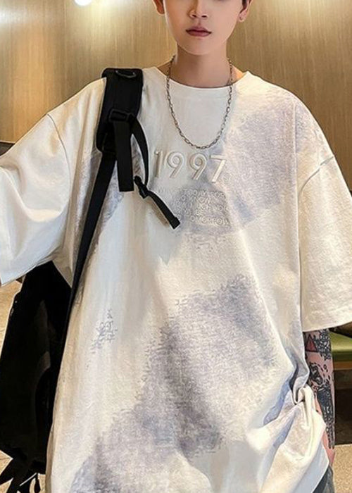 Plus Size White Embroideried Tie Dye Cotton Men T Shirts Half Sleeve