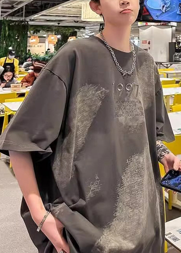 Casual White Embroideried Tie Dye Cotton T Shirt Men Summer