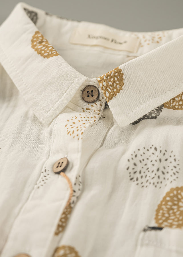 Tops Oversized Spring Orange Cotton Print Shirt Fitted