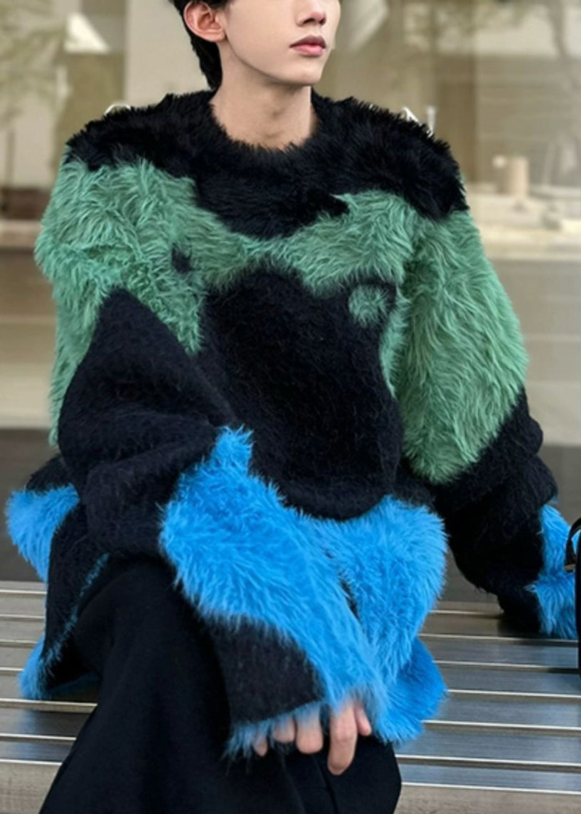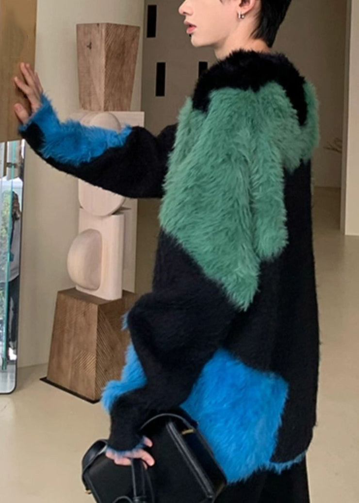 Unique Black Cozy Patchwork Mens Sweater Pullover Winter RC043