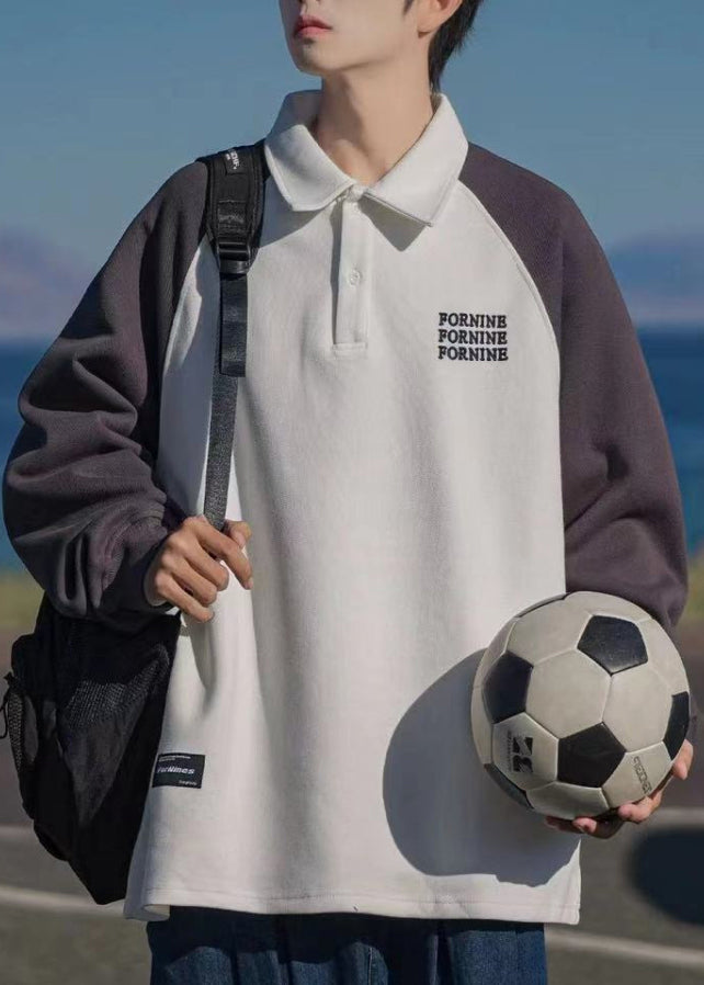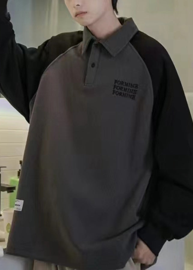 Indulge in the luxurious warmth and unique style of our Dark Grey Peter Pan Collar Patchwork Sweatshirt for Men this fall. Crafted with premium fleece for maximum comfort and design, this exclusive piece is sure to elevate your wardrobe.