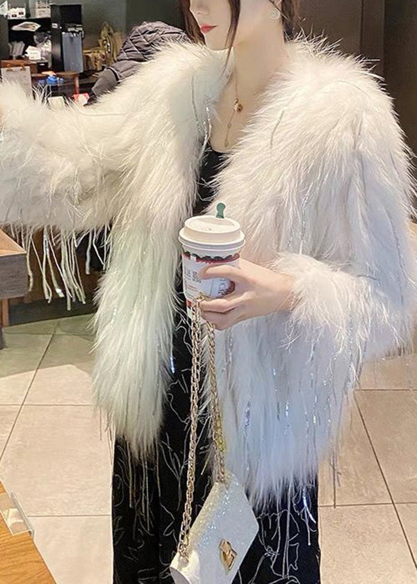 Introducing our exquisite collection of the season, the Unique Pink Tasseled Zircon Raccoon Hair Coat for Winter - a true symbol of luxury and elegance.