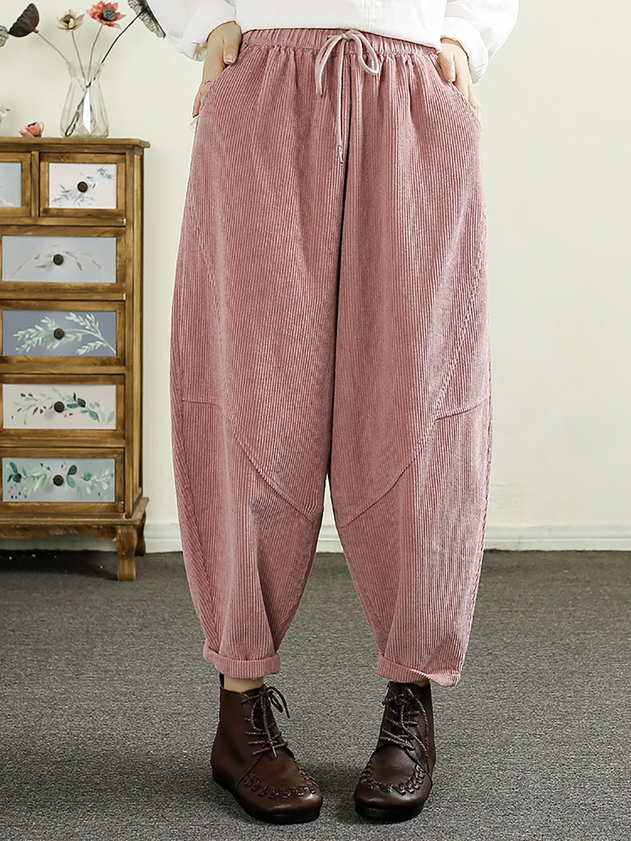 Women Autumn Solid Corduroy Spliced Cotton Harem Pants AI1047