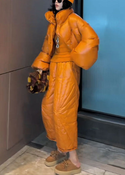 Women Coffee Button Coat And Crop Pants Cotton Filled Two Pieces Set Spring YW027