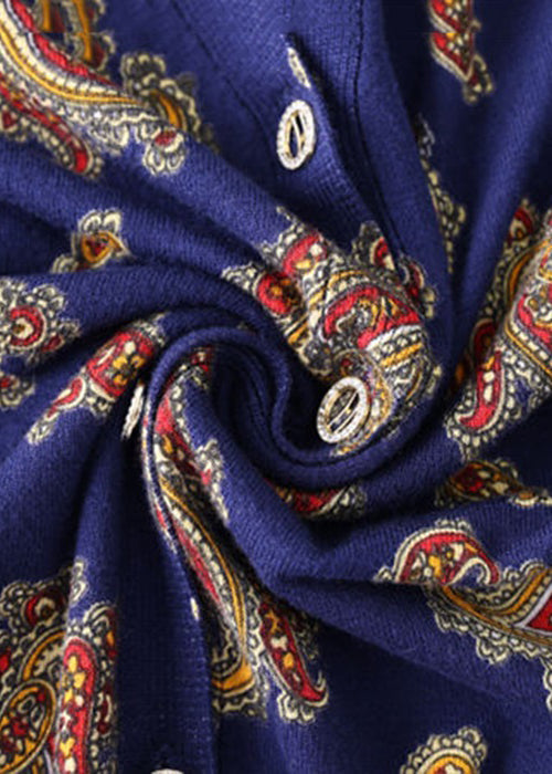 Women Navy Button Print Cozy Knit Cardigan Spring TB008