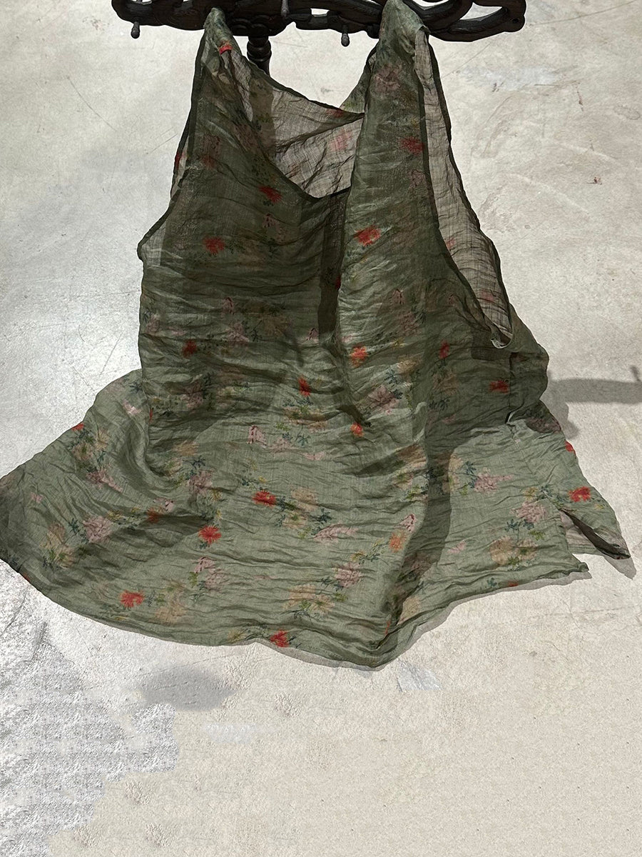 Women Retro Flower Thin O-Neck Loose Ramie Vest PP1025