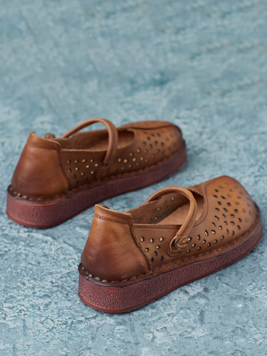 Elevate your summer look with our Women's Casual Leather Cutout Flat Sandals. Crafted from luxurious cowhide, these sandals offer breathability and a soft sole for all-day comfort. Embrace the warm weather in style with these elegant and versatile sandals. FG1029.