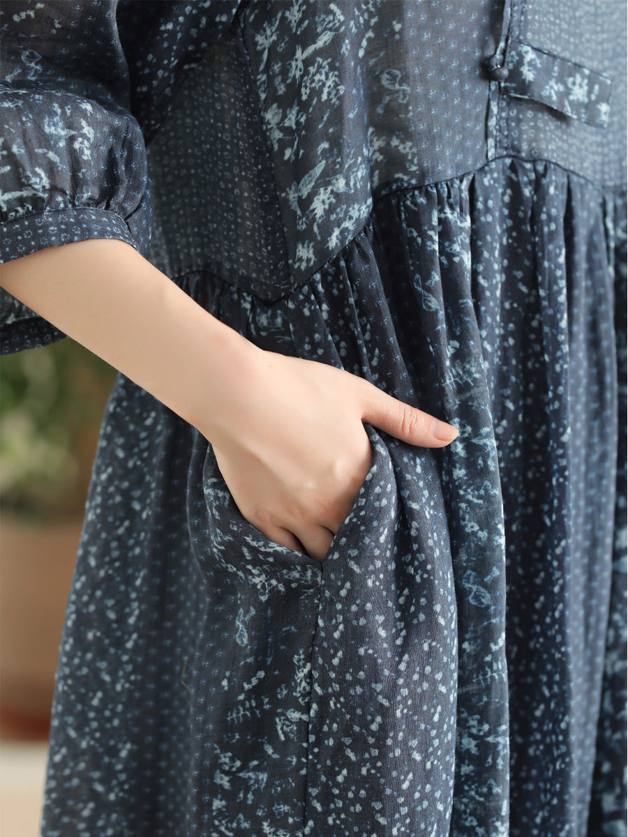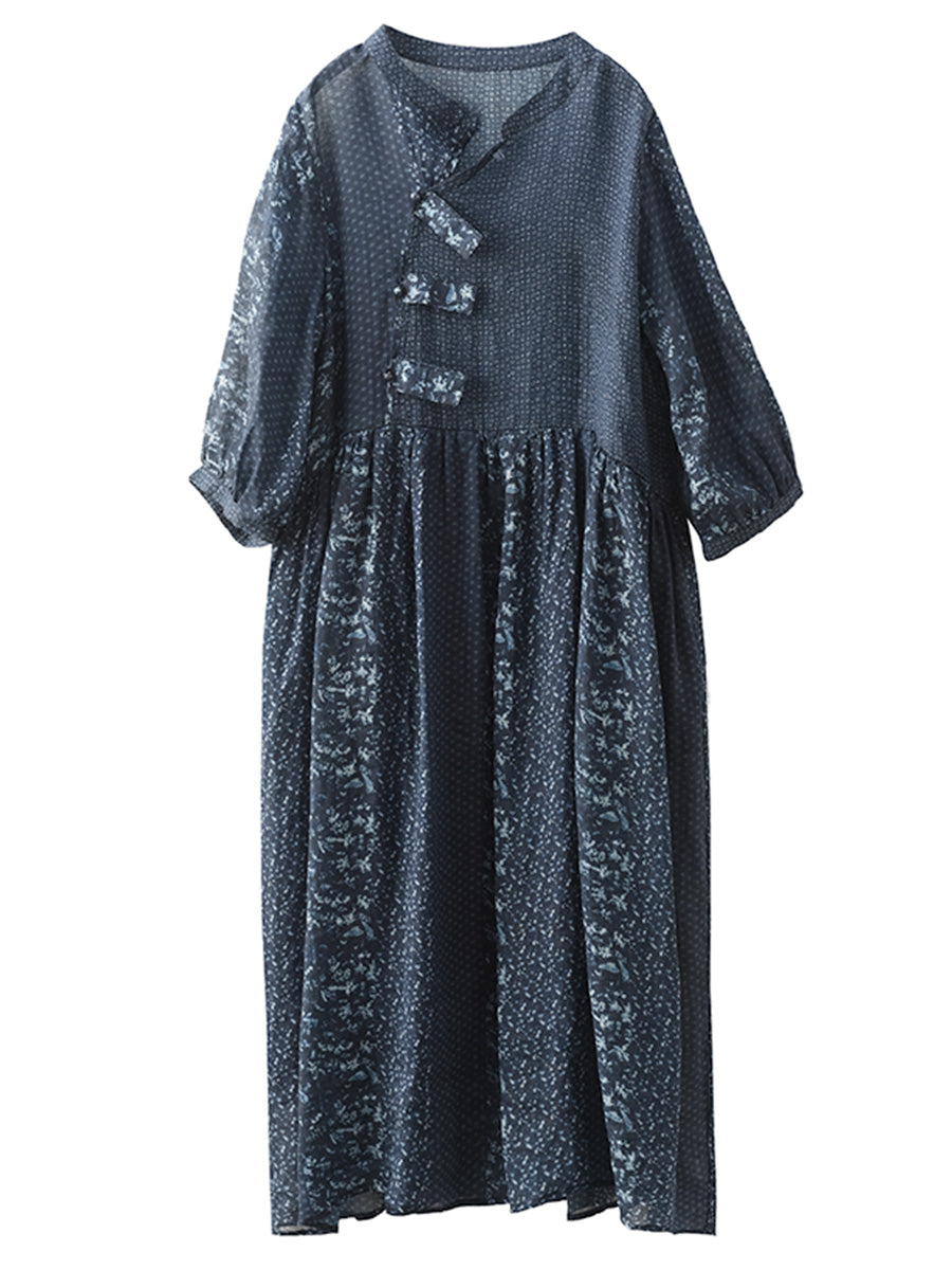Women Summer Vintage Floral Spliced Ramie Dress PP1013