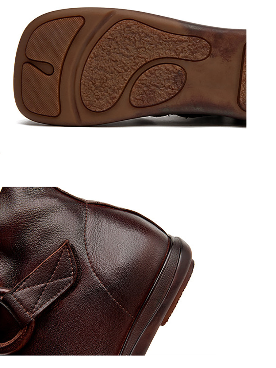 Indulge in luxury and sophistication with our Women Vintage Genuine Leather Spliced Zipper Flat Boots. Made with high-quality, genuine leather, these boots exude exclusivity and elegance. The unique spliced design and functional zipper add both style and convenience to your wardrobe. Elevate your footwear collection with these premium boots.
