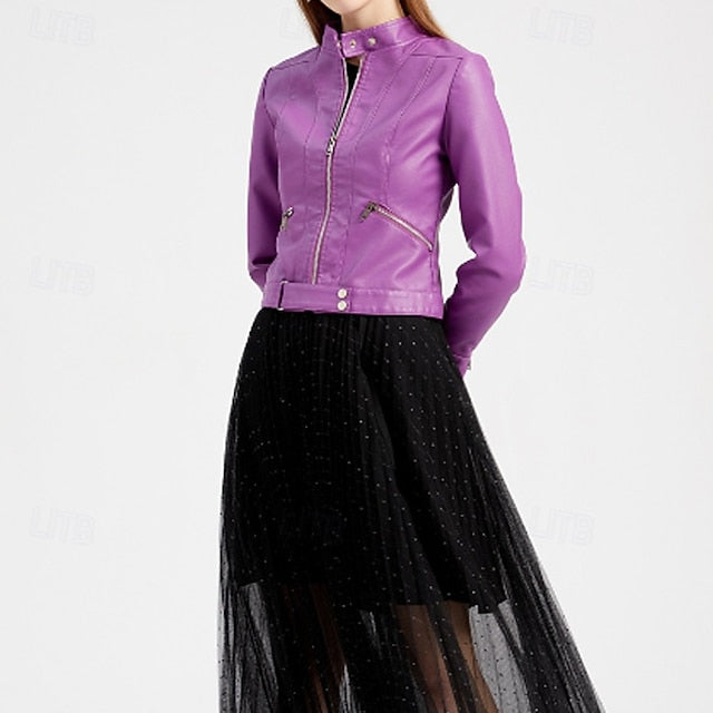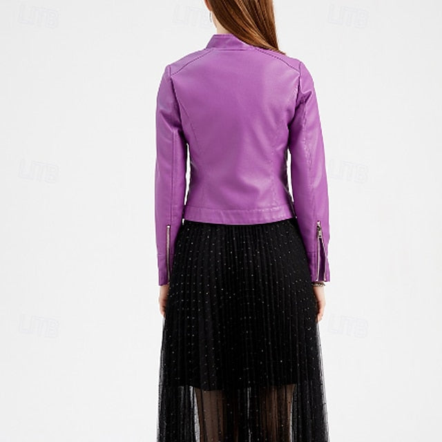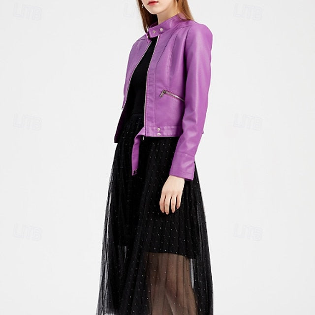 Gender: Women's, Outerwear Type: Faux Leather Jacket, Occasion: Weekend, Going out, Street, Daily Wear, Season: Fall, Spring, Function: Comfortable, Fabric: Faux Leather, Style: Casual, Outerwear Length: Regular, Pattern: Plain, Design: Zipper, Pocket, Neckline: Stand Collar, Sleeve Length: Long Sleeve, Fit Type: Regular Fit, Elasticity: Inelastic, Look After Me: Machine wash,